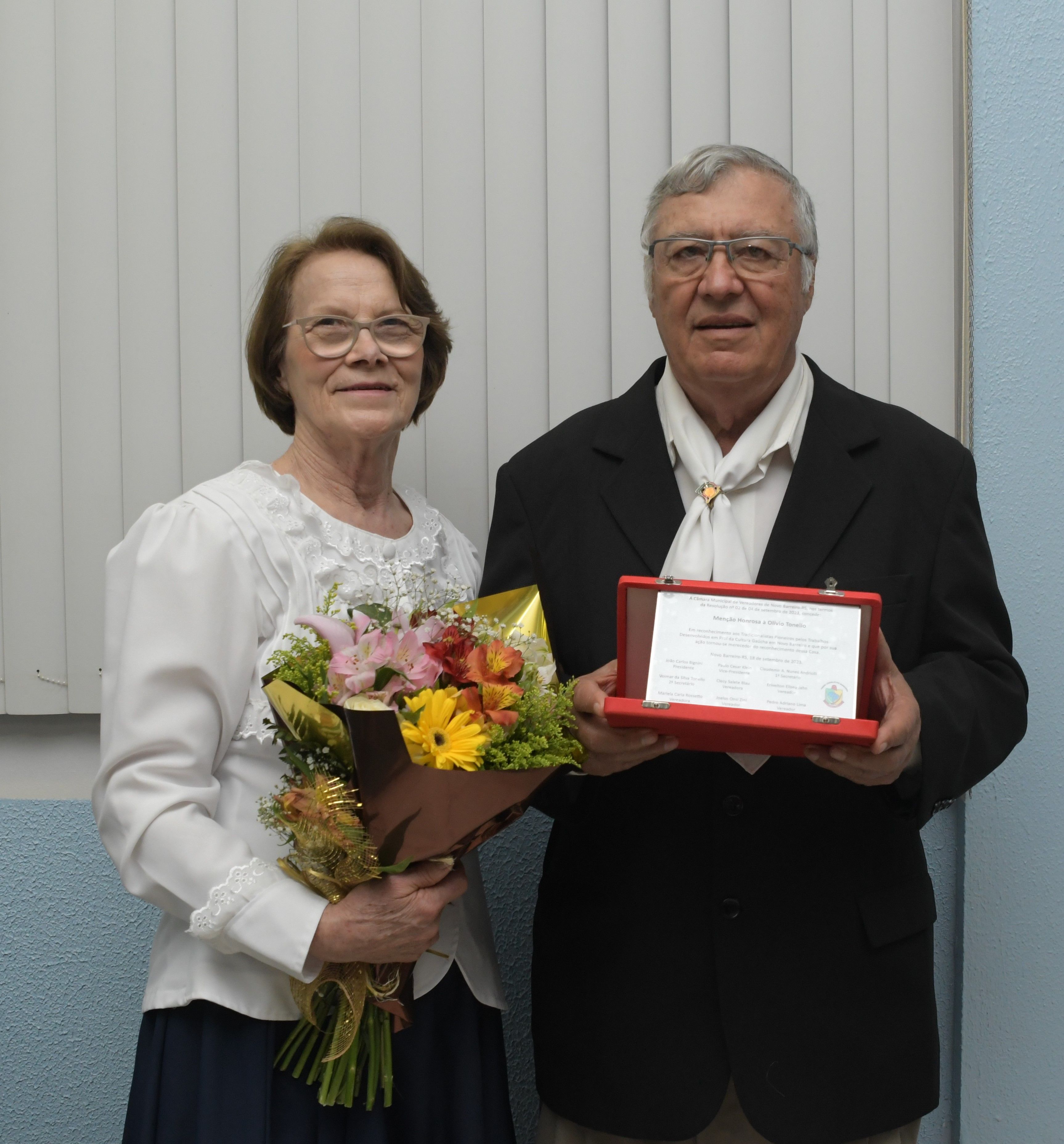 E em reconhecimento aos Trabalhos Desenvolvidos em Prol da Cultura Gaúcha em Novo Barreiro, Olivio Tonello tornou-se